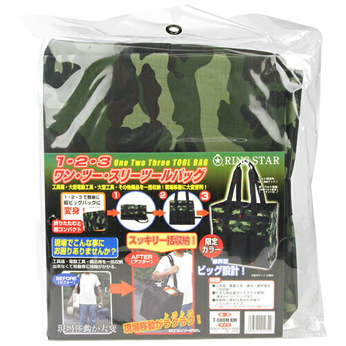 ・サイズ:(L)500×(W)300×(H)500mm ・カラー:迷彩 ・折りたたみサイズ:約300×250×50mm ・工具箱収納例:SR-450・530・D-4600・G-4500