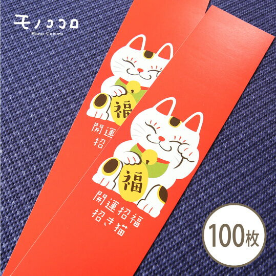 【メール便OK】福よこいこい!年始のご挨拶と共に贈る、赤い開運招福招き猫のミニ帯100枚入