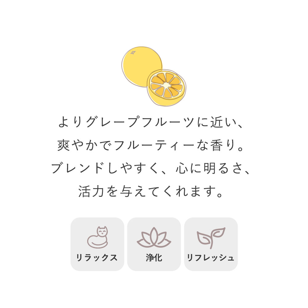 その摘みたて搾りたての香りはあなたを柑橘系精油の世界へと誘います。