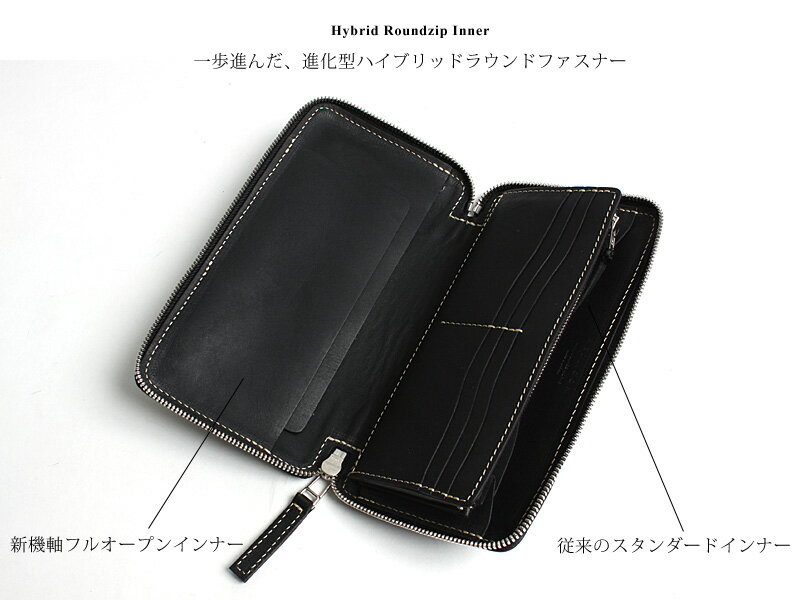 (6カードポケット&2層式大型フラップポケット) 0180度フルフラットで、 全開放が快適なラウンドジップ スタンダードで使い慣れたインナーと 新提案となるフルオープン採用の「パレット」フェイスをハイブリッドした 進化型ラウンドジップウォレット。