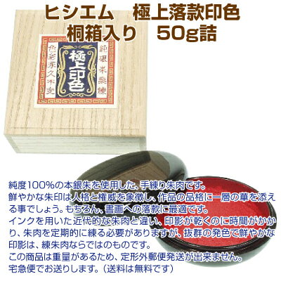 【サプライ】【朱肉】ヒシエム 極上落款印色 50g 桐箱入り 【店頭受取対応商品】【YOUNG zone】【HLS_DU】 長持ち 表彰状 公文書 公用書類 契約書 書画 落款 証券 金融 不動産 カメ 魚 たい焼き 南瓜 和紙 半紙